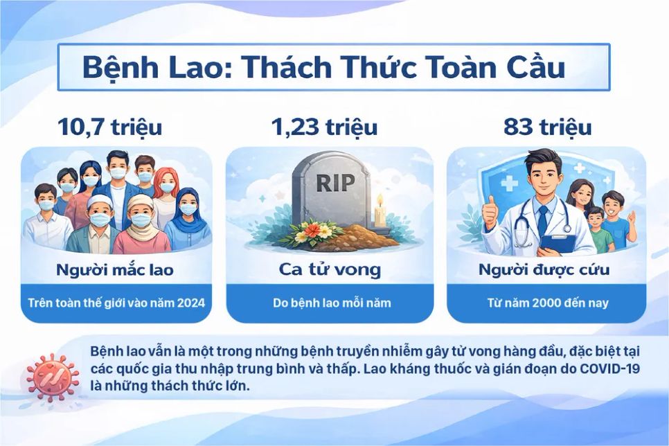 Tại Việt Nam, mỗi năm vẫn ghi nhận hàng chục nghìn ca mắc mới, trong đó không ít trường hợp phát hiện muộn, điều trị kéo dài và đối mặt với nguy cơ biến chứng nguy hiểm. Trước thực tế này, ngành y tế đang nỗ lực triển khai nhiều giải pháp đồng bộ nhằm phát hiện sớm, điều trị hiệu quả và tiến tới chấm dứt bệnh lao.