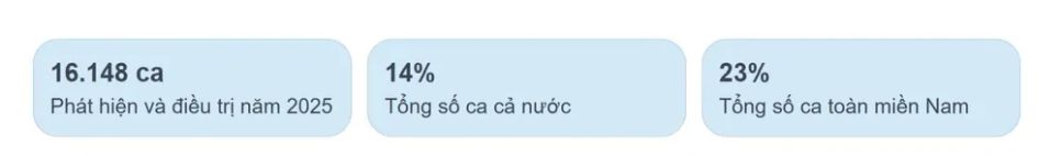 Tại TPHCM và khu vực phía Nam, số ca lao được phát hiện cao nhất cả nước, chiếm khoảng 60% tổng số ca lao phát hiện trên toàn quốc. Riêng TPHCM, năm 2025, phát hiện và điều trị 16.148 ca mắc lao (chiếm 14% cả nước và chiếm 23% tổng số ca mắc lao toàn miền Nam).